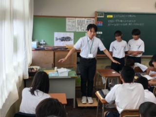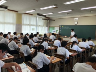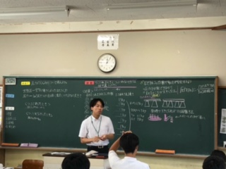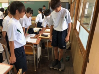 先週の9月8日(月)から2名の実習生が生徒と一緒に勉強をしています。本日、2年1組の理科の授業を池永先生が行いました。校長先生を始め、学年の先生や理科の先生が参観しました。圧力の仕組みについての内容でしたが、紙コップの上に板を乗せて、その上に人が立つのに紙コップが何個あればつぶれないのかという実験をしました。子どもたちもつぶれない様子にびっくりしていましたが、その理由について考えを深めていきました。教育実習もあっという間に2週間になります。池永先生は明日で実習が終了になります。短い期間でしたが生徒とかかわって多くのことを学んだのではないでしょうか。生徒たちにとっても思い出の一つになったのではないでしょうか。お疲れさまでした。明日は、有馬先生の授業が行われます。