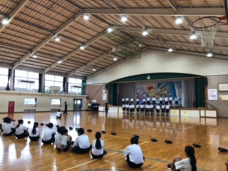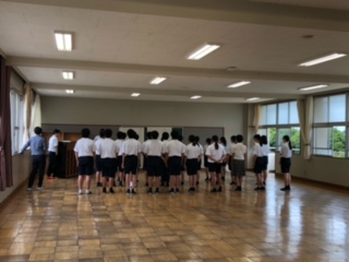 本日、文化発表会の合唱コンクールに向けての練習が本格的に始まりました。放課後に、体育館、音楽室、多目的室で割り当てを決めて順番に練習をしていきます。もちろん、教室での練習もあります。クラスでパート練習、全体で合わせての練習などパートリーダーを中心に工夫をして練習をしていきます。文化発表会は10月24日(金)ですが、その間に市新人大会、中間テスト、県新人大会と行事は目白押しです。歌の練習も短い時間、みんなの気持ちを一つにしてやっていかないと効率が悪くなります。時間を有効に使っていきましょう。