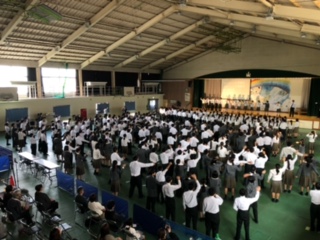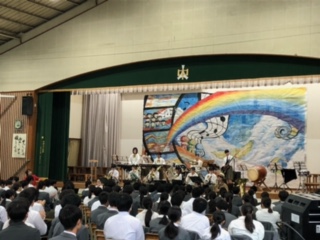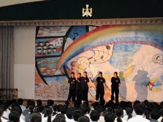 本日、文化発表会が行われました。「彩虹 ~さいこう~」のテーマのもと、すべての発表が「彩虹」だったといえる発表会になりました。特に合唱コンクールでは、すべてのクラスが中間発表会から課題を確認して上達していました。各学年、金賞は選ばれましたが、すべてのクラスが金賞と言える合唱コンクールでした。今回の合唱コンクールでは、審査員として、芸術緑丘高等学校の植木千明先生をお招きして行われました。先生からもすべてのクラスが良かったとお褒めの言葉をいただきました。また、合唱が上手になるポイントの一つとして、「メロディに道を譲る」という言葉をいただきました。忘れないようにしましょう。最後に、本日ご観覧いただきました保護者の皆さま、お忙しい中、足を運んでいただき本当にありがとうございました。生徒の皆さん、本当にお疲れさまでした。素晴らしい文化発表会をありがとうございました。