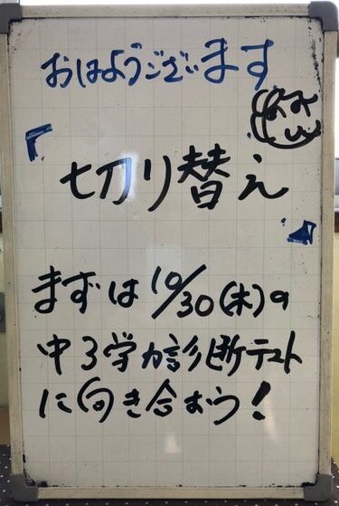 本日、2回目の中3学力診断テストが行われました。1回目は、9月2日でしたから、あっという間だったと思います。文化発表会も終わり、3年生はいよいよ受験モードに入っていきます。「受験は団体戦」とよく言われますが、一人一人が受験に対しての意識を高く持って行動することが、これからの3年生の大きな課題になっていくと思います。自分の進路です。自分でしっかりつかみ取るためにも、残りの中学校生活を大事にしていきましょう。頑張れ、3年生!