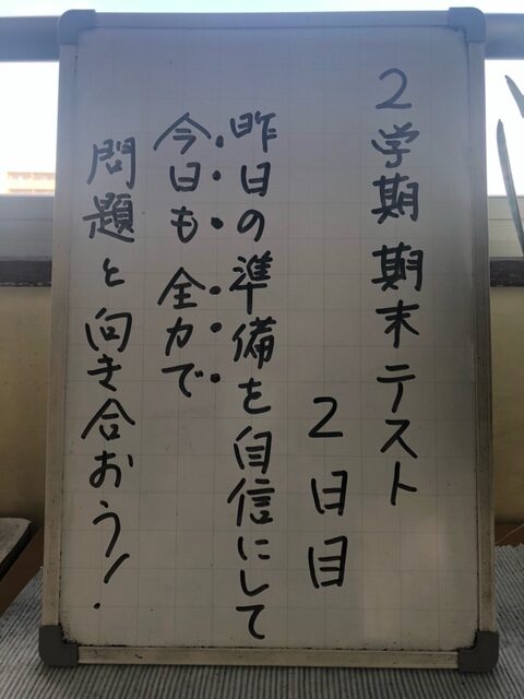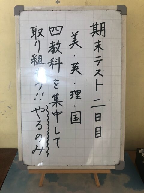 2学期末テストが終わりました。手ごたえはどうだったでしょうか。この後のやり直しやテストまでの取組をしっかり振り返るなどして、次につなげていきましょう。テストは終わりましたが、2年生にとっては、最大の行事、修学旅行が近づいています。11月24日(月)の出発に向けて、準備のラストスパートに入っていきます。思い出のたくさん残る充実した旅行にするためにも、準備をしっかりやっていきましょう。3年生は、進路実現に向けて追い込みに入ってきます。また、2回目の三者面談も近づいてきます。家庭でもよく話をして、面談に臨み、志望校を決定してほしいと思います。1年生は、2学期が終わるまで大きな行事はありませんが、少しずつ2年生になるという意識を持ち始めているでしょうか。今のままで、来年の4月、後輩が入学してきて胸を張って先輩と言えるかどうか、自分を振り返ってみてください。各学年、思いは様々ですが、これからが大事になります。テストが終わって冬休みを待つばかりという気持ちで、落ち着きがなくなっては全く意味がありません。自分の未来のために、1日1日を大切にしてほしいと願うばかりです。