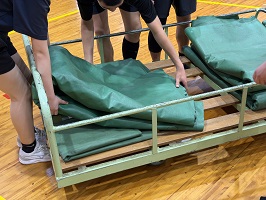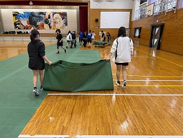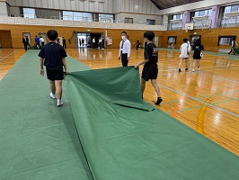 入学式が終わった後、体育館に敷かれていたシートをたたんでくれました。みんなのためにすすんで動いてくれる、さりげないかっこよさが素敵です。男女バレーボール部の皆さんありがとうございます!
