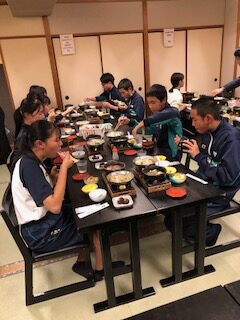 二日目は自主研修でした。初めての土地でバス乗り場も分からず班員と相談しながらまわり、人の多さや大きな京都駅などにビックリしたのではないでしょうか。17時頃まで活動したので、旅館の食事をさらに美味しく食べたと思います。その後、先生たちと散策して見るイルミネーションも思い出になったと思います。本日は最終日。なんばグランド花月や御堂筋などを見て、さらに思い出をつくってきてください。