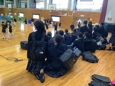 4/13(月)から4/17(金)まで、1年生の部活動見学期間です。初日の今日は、2・3年生の授業が終わるまで教室で待って、体育館やグラウンド、テニスコートへ向かう1年生が多くいました。体育館では、卓球部、バスケットボール部、バレー部が活動する様子を、ステージの上から見学していました。チャレンジしてみたいと思う部活が見つかるとよいです。申し込み締め切りは、4/20(月)です。