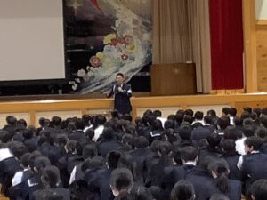 令和8年4月1日から、自転車にも「交通反則通告制度(青切符)」が導入されたました。今年度は、1回目の自転車安全教室で、東警察署の方をお招きし、気を付けることをお話ししてもらいました。大事なこととして、3点、伝えていることがあります。忘れずに自転車を使用しましょう。