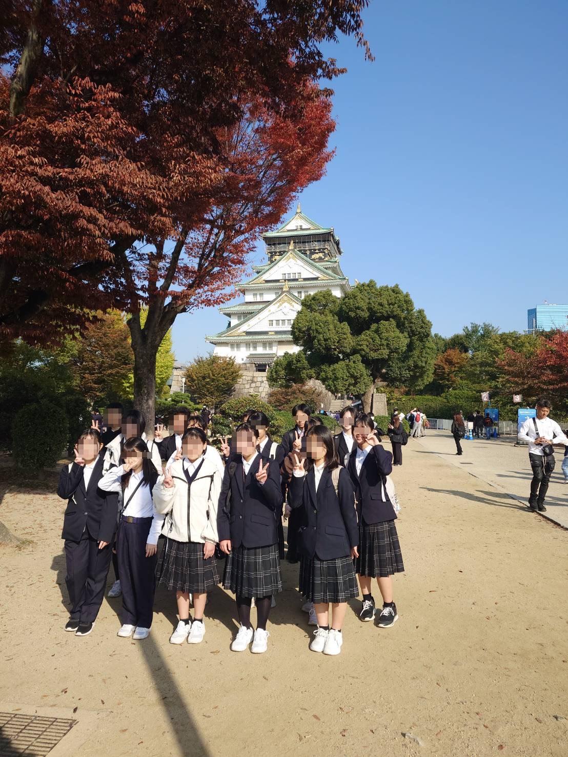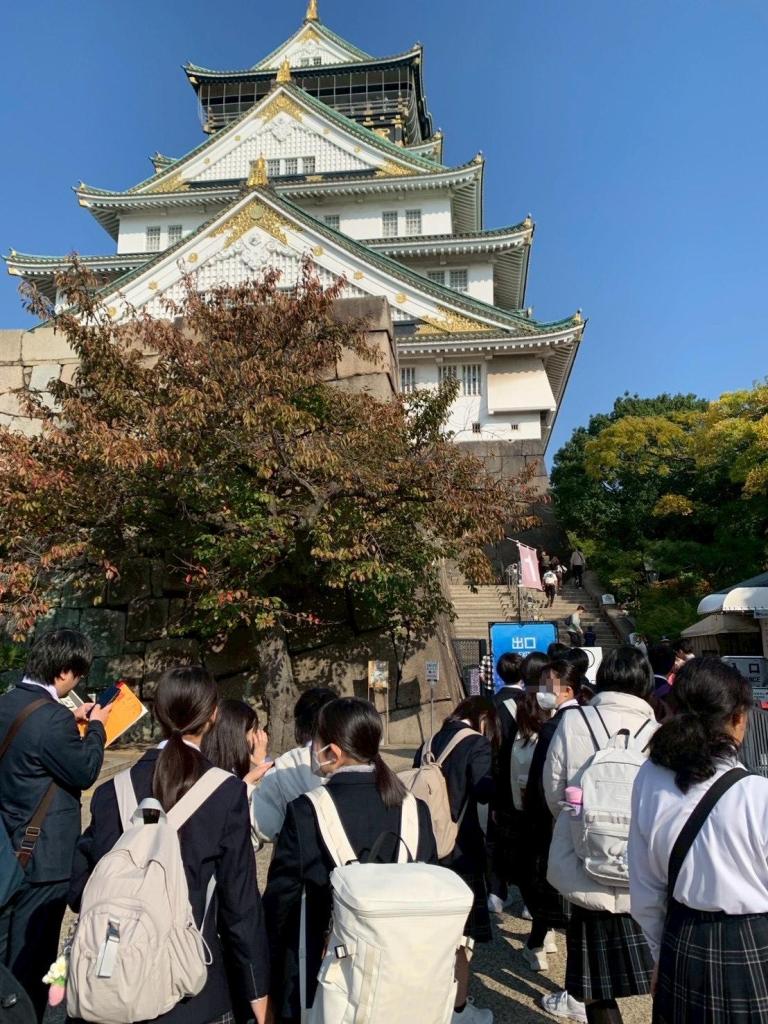 今日の最初の目的地は、大阪城です。目の前に大きなお城が!