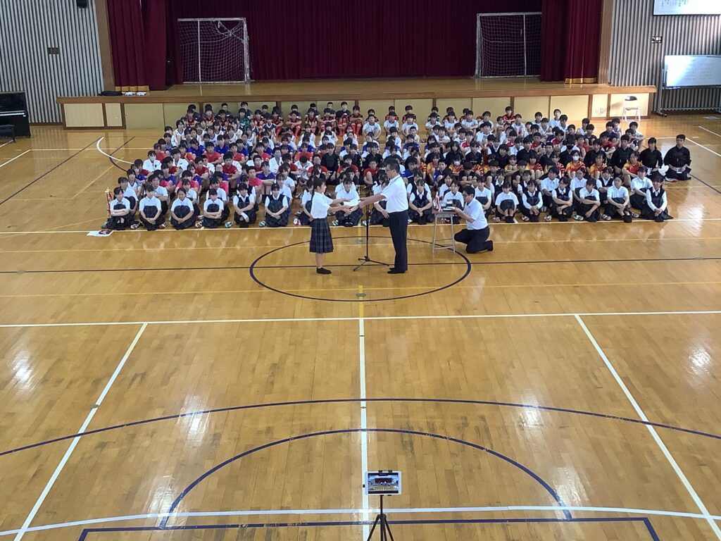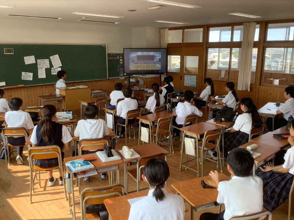 本日は6限に選手激励会と表彰がありました。本来であれば、全校生徒が体育館に集合し、実施される予定でしたが、本校でもインフルエンザ等の罹患者が増えていることから、選手以外は各教室に待機し、zoomで参加することとなりました。各部の決意表明は、新チームとなり、初めての中体連の試合にかける思いが伝わるものでした。吹奏楽部も10月11日(土)に福岡市で行われる第43回九州マーチングコンテストに向けて、力強い決意表明を行いました。運動部同様、こちらも応援よろしくお願いします!