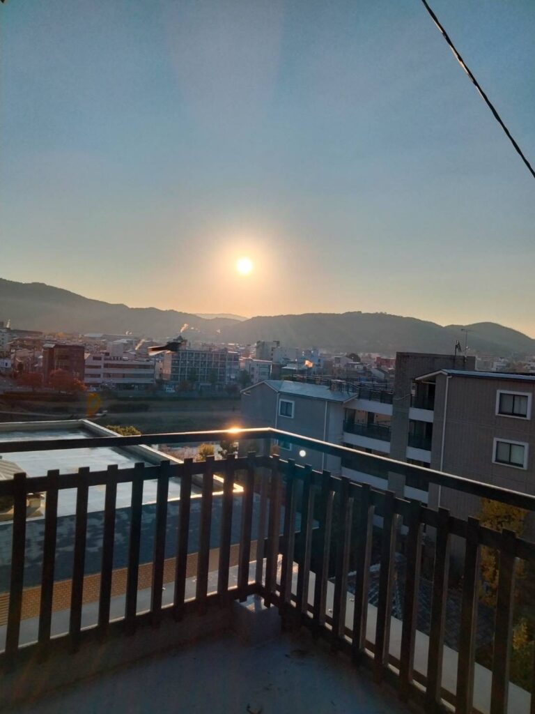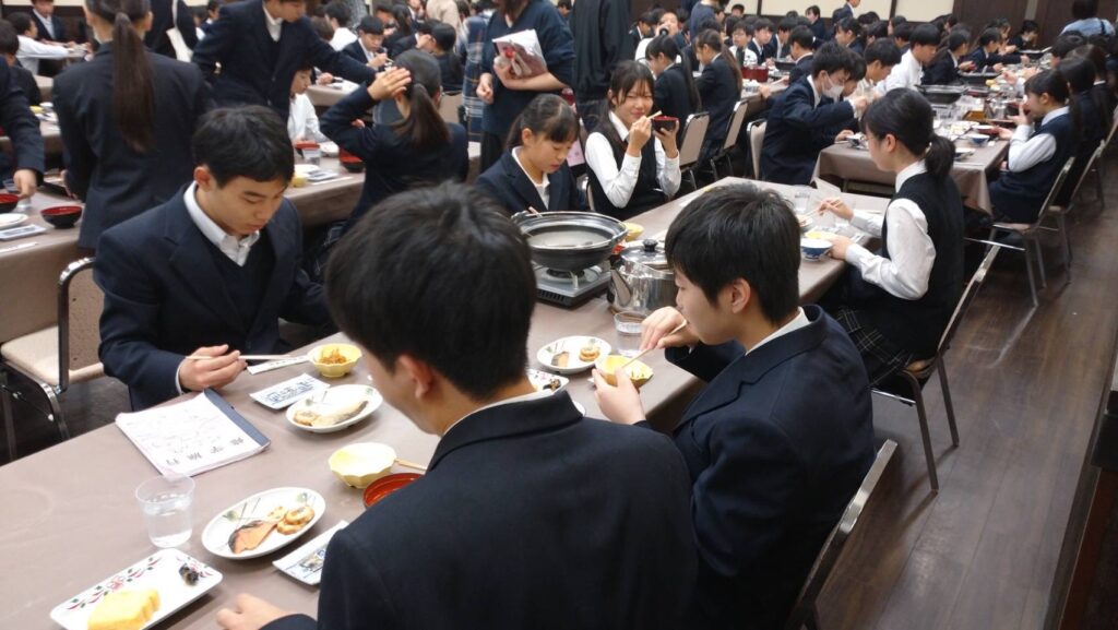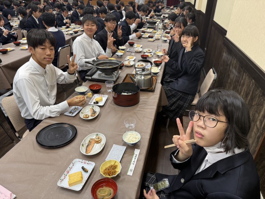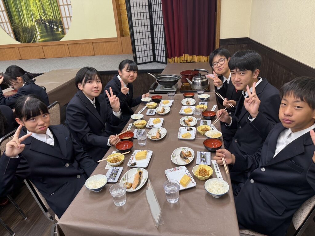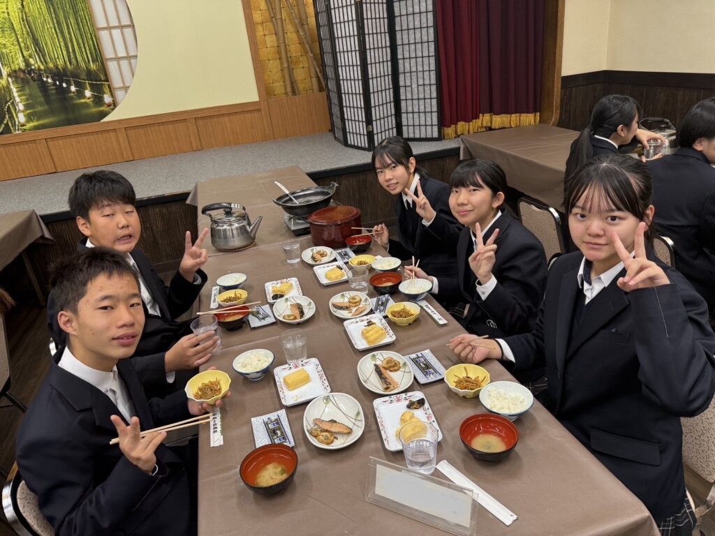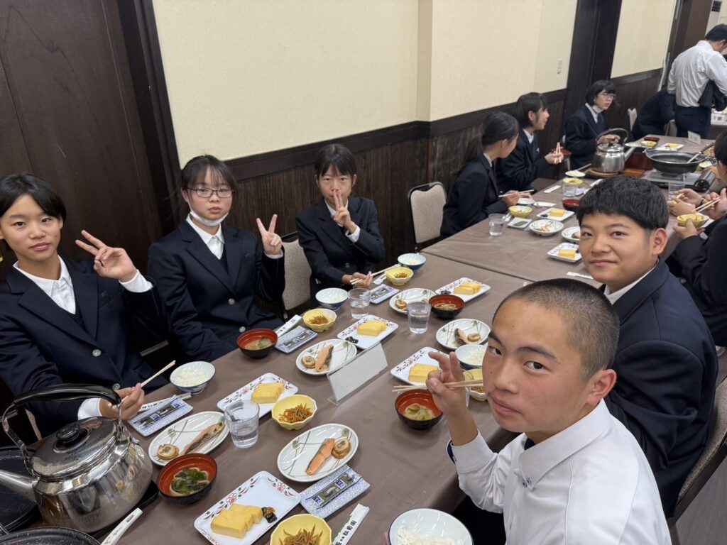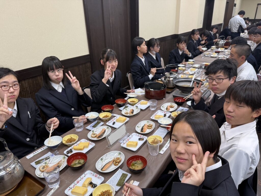 本日の京都は朝の冷え込みが厳しいものの、よい天気となっています。朝食をしっかりと食べて、いよいよ京都一日自主研修に出発です!