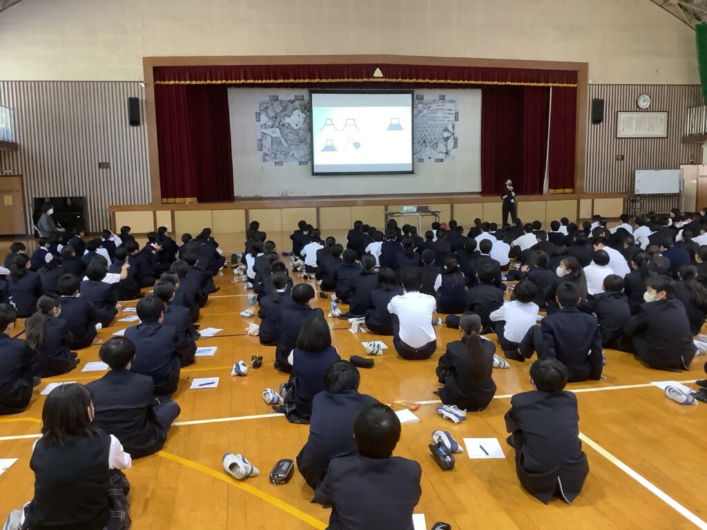 本日5、6限に大分市教育委員会人権教育推進課の方を講師としてお招きし、「思い込みや偏見をなくしていくには~学校生活での仲間づくり~」の演題で1年生を対象に人権教育講演会が行われました。実際に富士山の絵を書いてみることで、知らず知らずのうちに富士山のかたちはこういうもの、という思い込みはないか、血液型による思い込みはないか、「いじり」は「いじめ」であることなどについてお話がありました。あってはいけないことですが、もし「いじめ」があった時には、①注意をする②いじめのムードを壊す「スイッチャー」となる③いじめられている人とも仲良くし続ける「シェルター」となる④同調しない、という4つが大切であることを学びました。