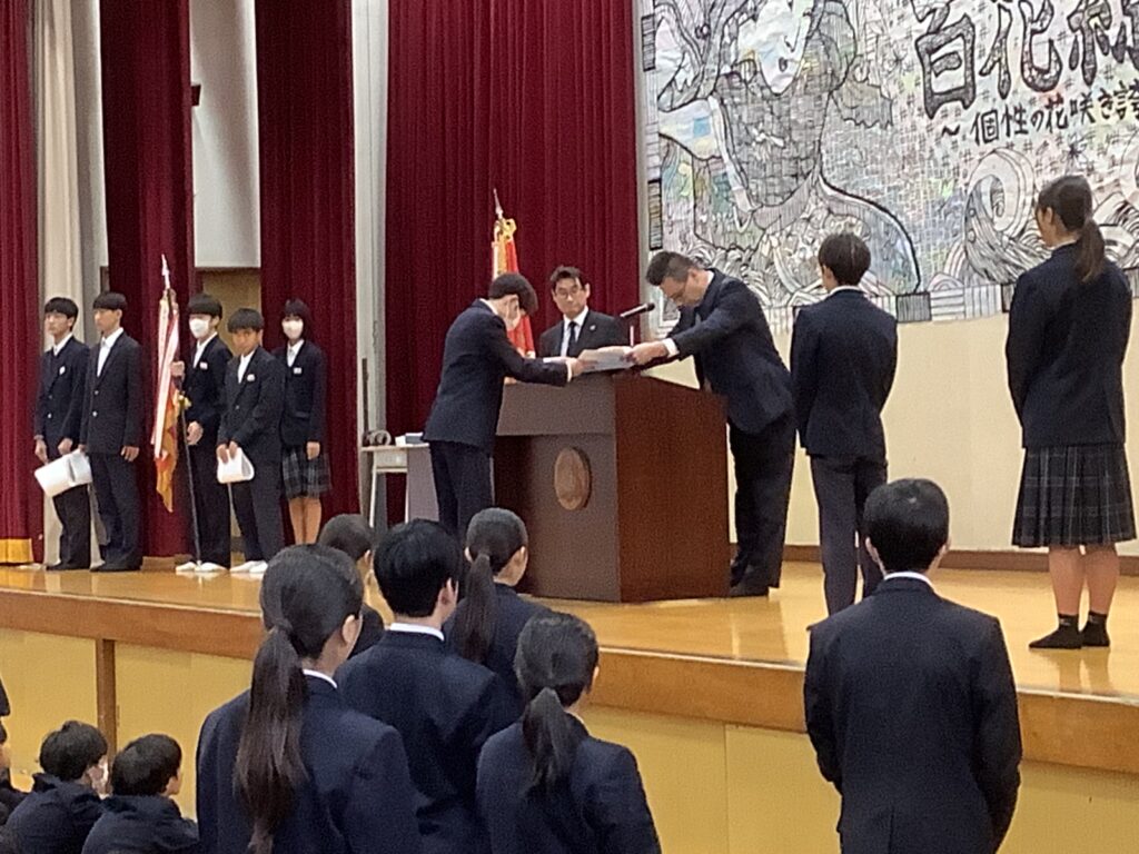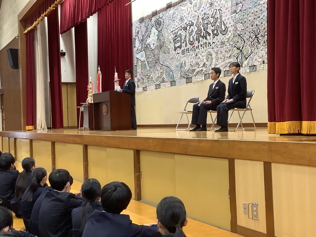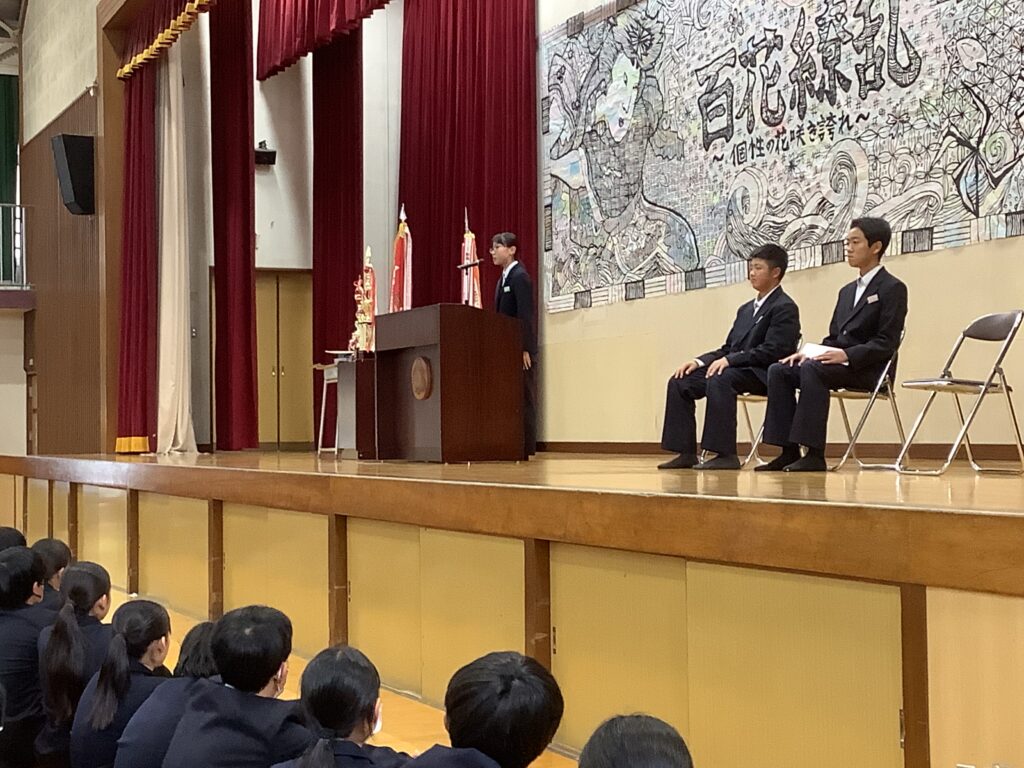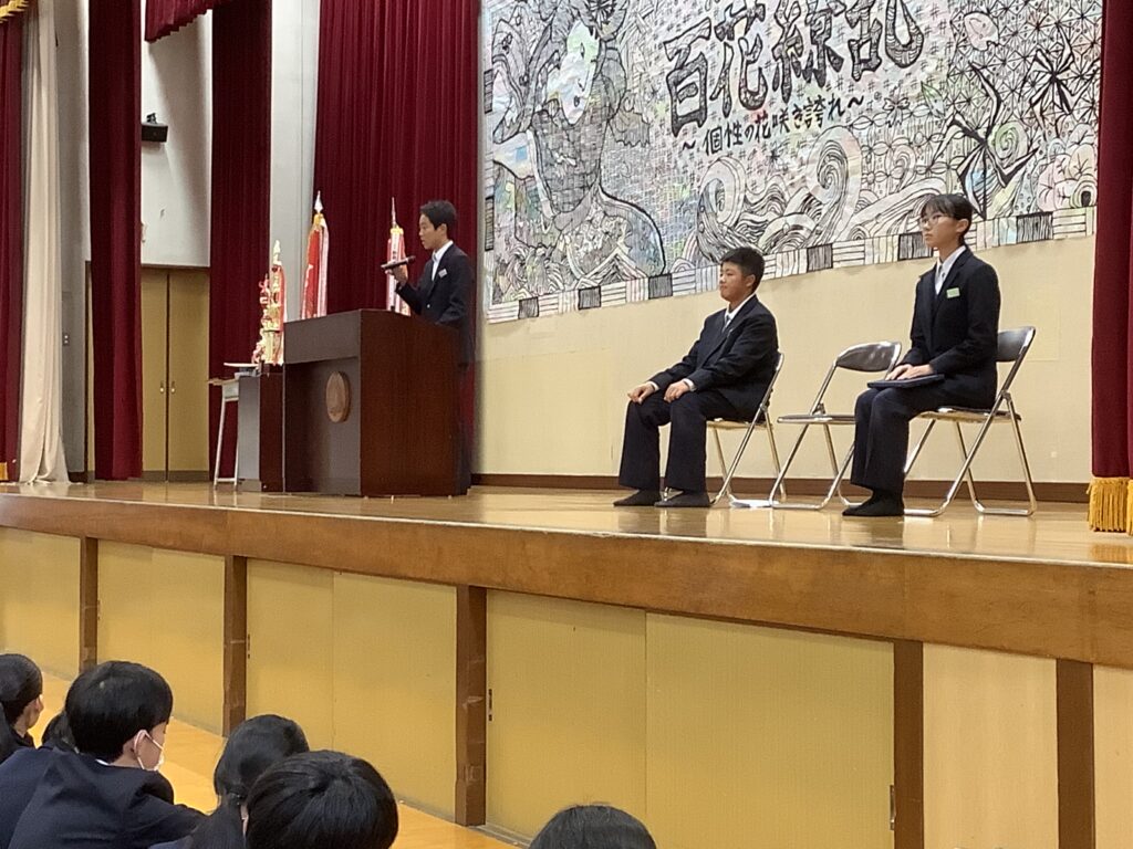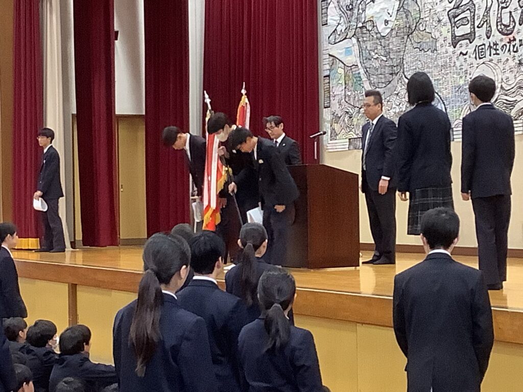 長かった2学期も本日終業式を迎えました。1年生の宿泊体験学習に始まり、合唱コンクール、響心祭 文化の部、2年生の修学旅行と数々の行事を経て、生徒は一段と成長したように感じます。本日の終業式での各学年代表による意見発表では、自分の頑張ったこと、一緒に頑張った仲間への感謝、冬休みの抱負等を堂々と述べていました。また、部活動だけでなく、美術、作文等たくさんの表彰も行われました。