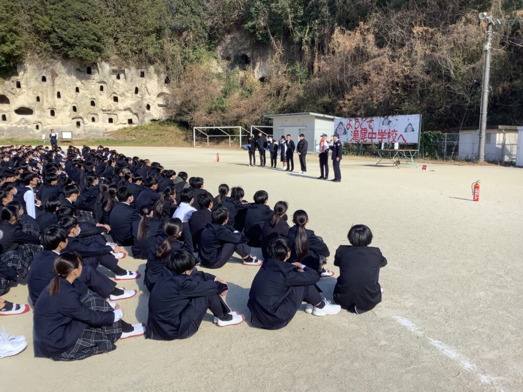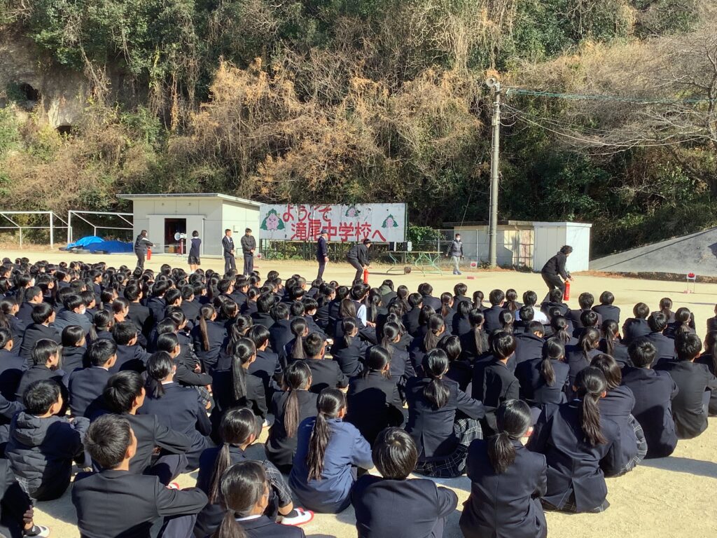 さて、新年早々ですが5日に山陰地方で震度5強の地震があり、その後も地震は続いている状況です。そのような中で、午後は大分市中央消防署の方が来られ、地震を想定した防災訓練が実施されました。静かでスムーズな避難が実施でき、消防署の方からもお褒めの言葉をいただきました。その後、代表生徒・教員による初期消火訓練が実施されました。地震の際には火災の発生する確率も高くなります。地震はいつ起こるか分かりません。日頃からの備えをしておくことが大切であることを改めて実感しました。