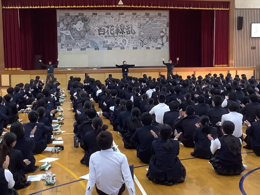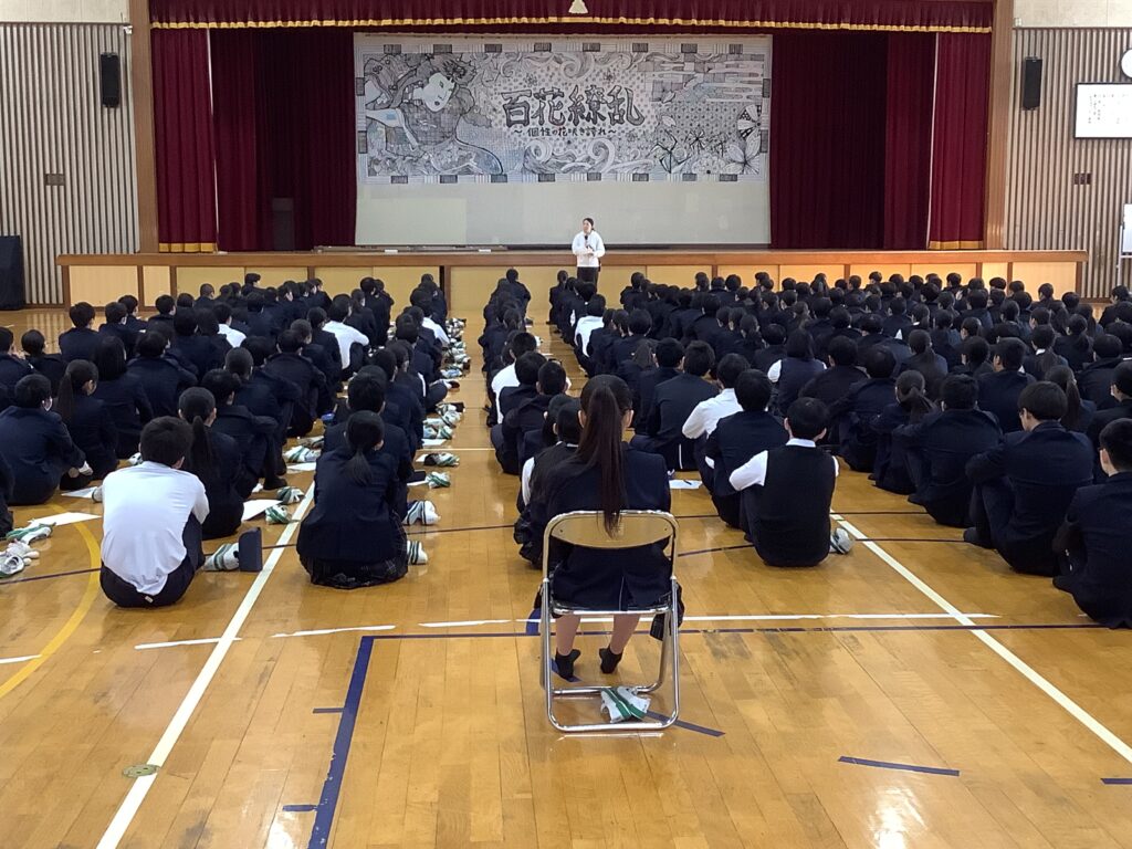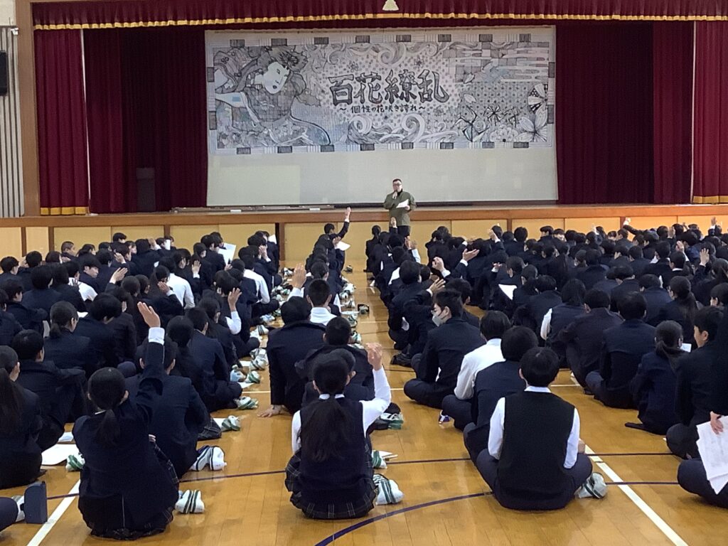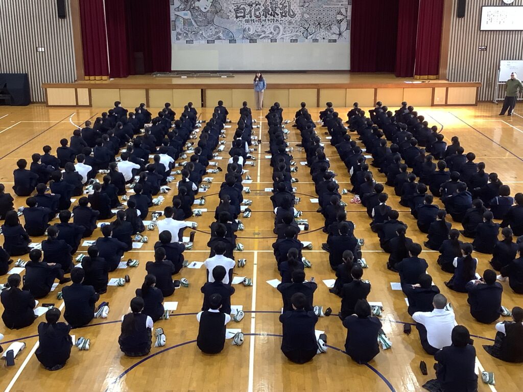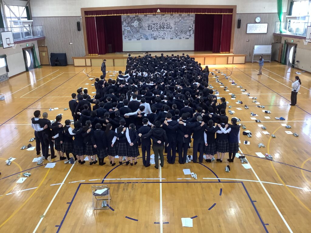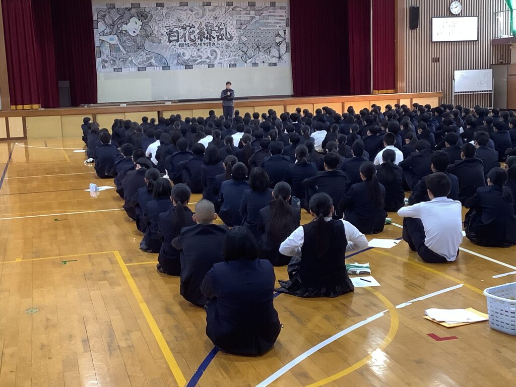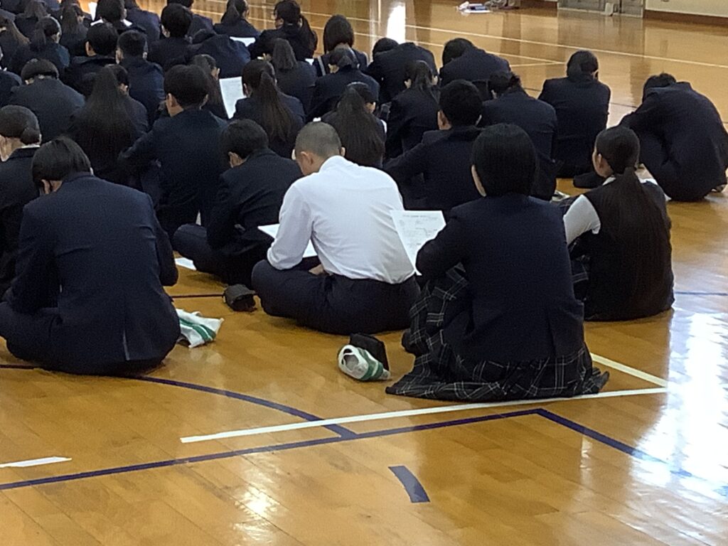 早いもので、1月も第4週目に入り、明日は多くの中学校3年生が初めての受験を迎えます。そこで本日の午後、明日の入試に向けて前日指導が行われました。校長先生をはじめ、学年主任、進路担当、学習、生活の先生からそれぞれ前日、当日の心得について大切なお話がありました。その後、3年部の先生方から生徒に向けてエールが送られ、最後は3年生みんなで肩を組みながら、入試に向けて士気を高めました。今日は家に帰って、配付された資料を見ながら準備をしっかり行い、明日は実力を発揮してほしいと思います。