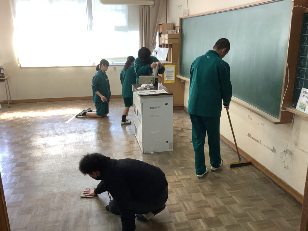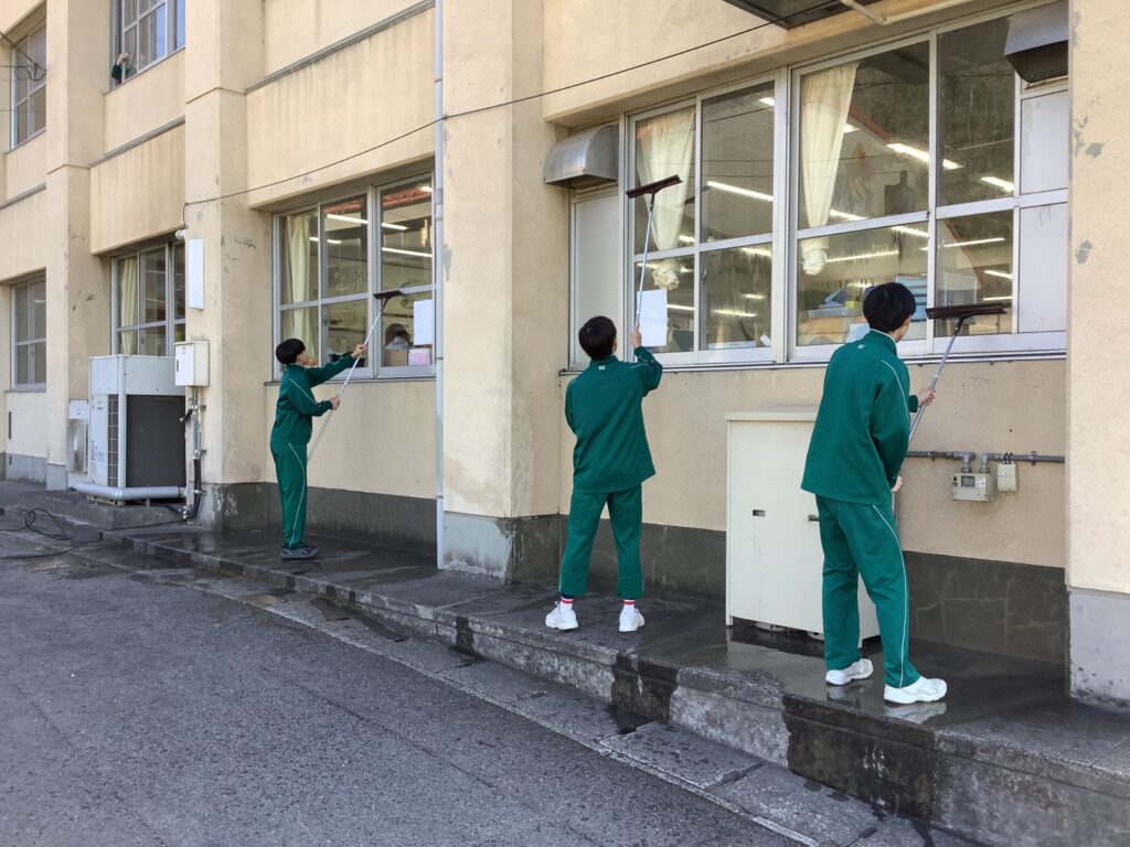 3年間過ごした中学校へ登校する日もあと10日となりましたが、本日の午後、3年生による奉仕活動が行われました。全体会の後、担当区域に分かれて活動が始まりましたが、どの場所に行っても黙々と一生懸命に取り組む姿が見られました。日頃は、なかなか清掃が行き届かない場所までもきれいにしてくれたおかげで、学校がとてもきれいになりました。3年生のみなさん、お疲れさまでした。