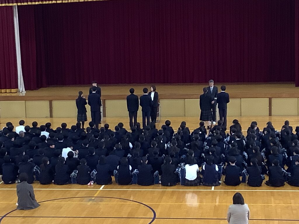 安東校長先生をはじめとし、13名の先生方が本校を離任されることとなりました。これまで、本校の発展のためにご尽力いただき、深く感謝申し上げます。それぞれ、新しい道を進まれることとなりますが、これからの益々のご活躍を心よりお祈り申し上げます。