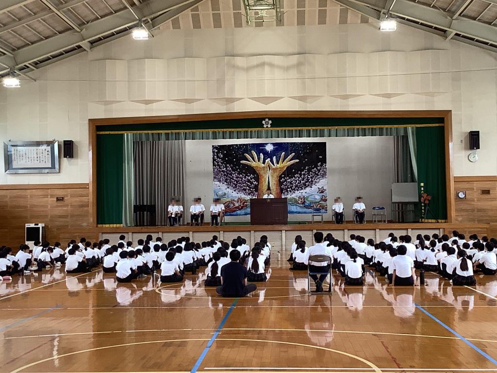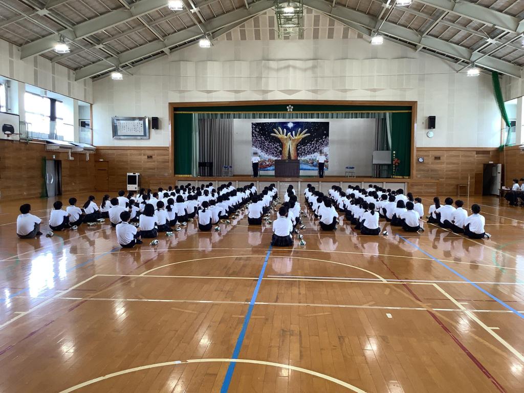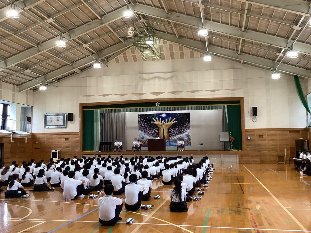 生徒会後期役員選挙立会演説会が行われました。学校の生徒会選挙は、「自分たちのリーダーを、自分たちの中から、自分たちで選ぶ」ことを体験する重要な学びの場です。「より良い学校を目指すために」、立候補者たちは、自分たちの良いところや今後の課題、希望や目指す姿像を堂々とした態度で語ってくれました。各候補者のやる気と勇気には、大変感心します。生徒たちも、仲間の思いを受け止めながら、自分たちのことを振り返る貴重な機会にすることができます。どの学年も、演説を行う生徒、熱心に聞く生徒の凛とした態度はとても立派でした。生徒会選挙を通して、ますます学年、学校が活性化することを期待しています。
