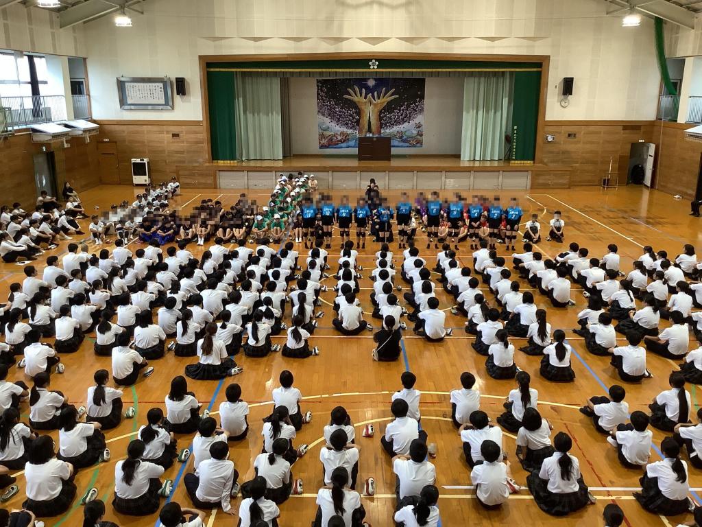 3年生が引退し、夏から2年生が中心となって部活動に取り組んできました。その成果を発揮する初めての大会です。選手たちはちょっぴり緊張しながらも、しっかりと意気込みを全校に伝えてくれました。