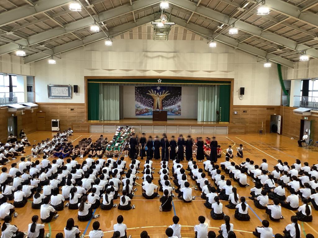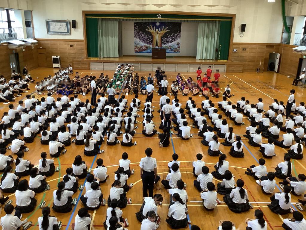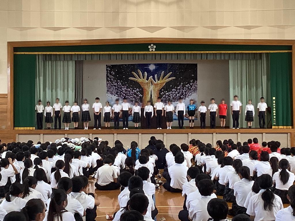 後期生徒会長からは、「…前期を引き継ぎ、それを越せるよう全力で頑張ります。生徒会とは生徒一人ひとりで創りあげるものです。後期メンバーは責任をもってそれぞれの役に取り組んでいくので皆さんも高い意識をもって一つ一つのことに取り組んでいきましょう。」と、話がありました。
