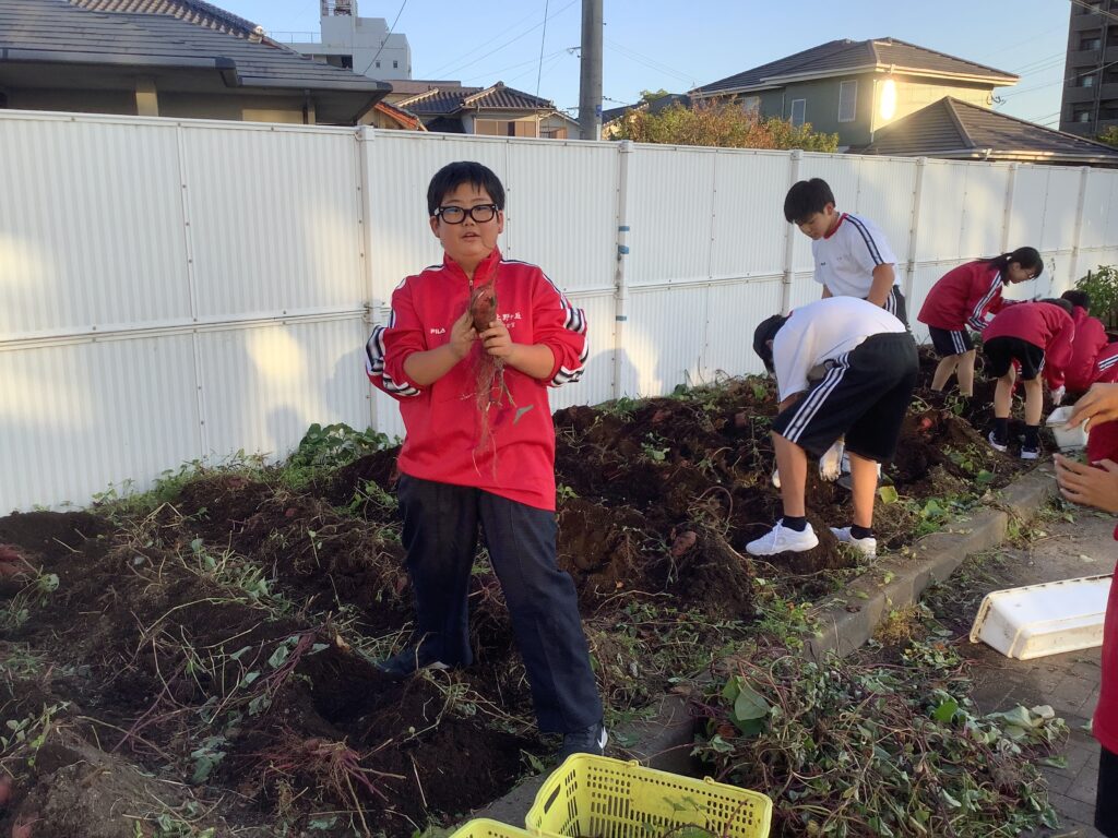 本日は、地域の方、難波青史さんのご指導の下、5月に苗植えを行ったサツマイモの収穫体験をしました。収穫したサツマイモは、来校していただいた地域の子ども食堂の方々に寄贈しました。