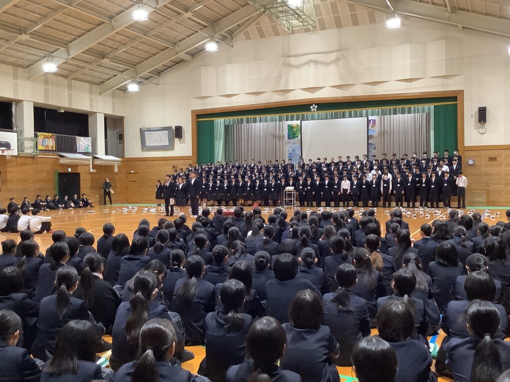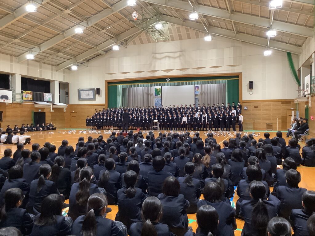 中でも、3年生に贈るためにこの日まで1・2年が練習を積み重ねてきた「3月9日」の合唱、3年生が卒業に向けて心を一つに練習してきた合唱「正解」、そして全校で歌う機会が最後となった「上中校歌」は、どれも温かい思いが込められた素晴らしい合唱で、とても感動的でした。 上中の伝統、上中生の心は、しっかりと引き継がれています。3年生とともに過ごす残り僅かな時間を、感謝と祝福の思いをもって大切にしたいと思います。
