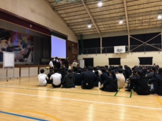 11月14日(金)、全校生徒対象に生き方を考える講演会を行いました。講師は徳島県人権・同和教育講師団の中倉茂樹さんです。「人間が究極の輝きを放つとき!」を演題に講演をしていただきました。すべての人が幸せになるための講演会で、稙田東中学校のこれからの人権教育の礎となるものでありました。今後の学校生活に生かしていこうと思います。